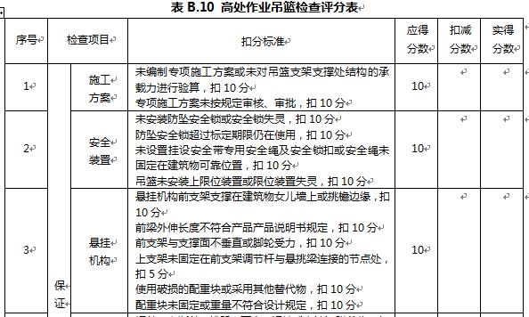 (3)、高处功课吊篮..项目的检查评定应符合下列划定: